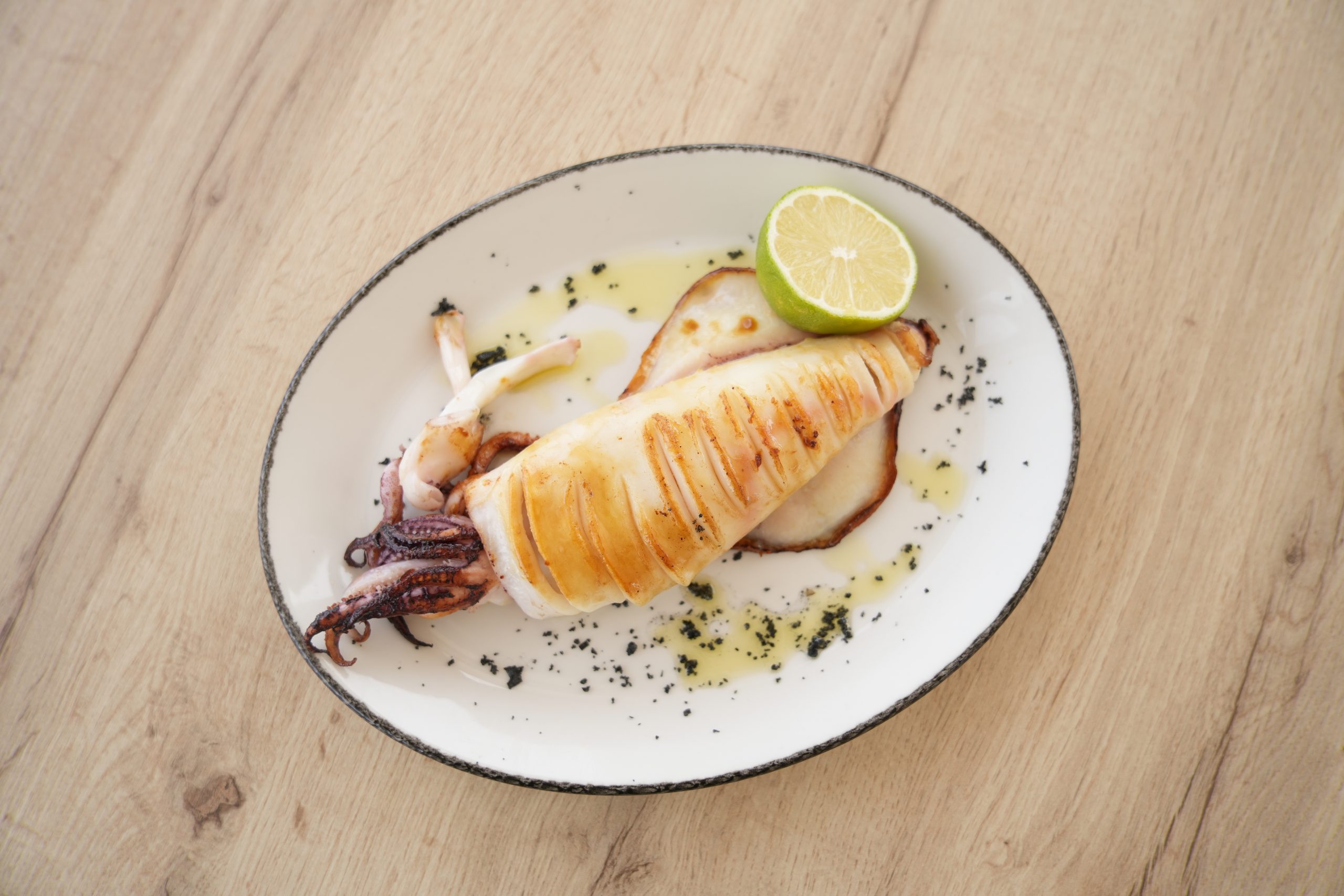 Exquisitos pescados, pulpo y calamares de potera cocinados a la plancha, rebozados o a la brasa de encina en horno Josper